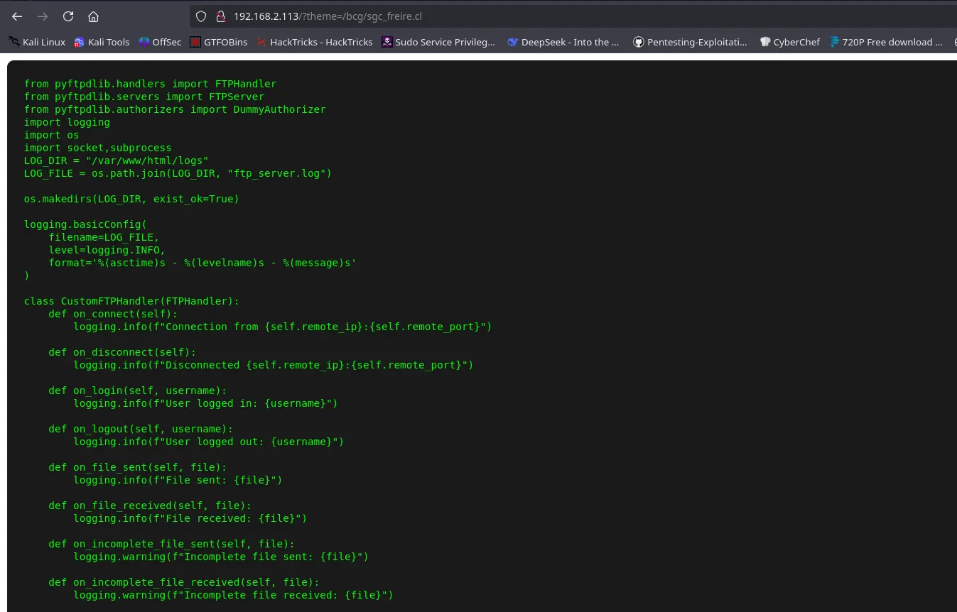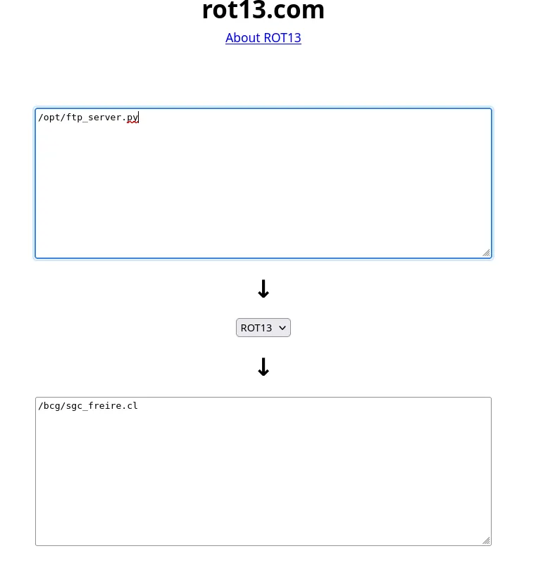 we can use our previously found Path Traversal vulnerability with ROT13 encryption to access their content :As predicted .. the ftp_server.py file contained the ftp server configuration with plain text credentials :