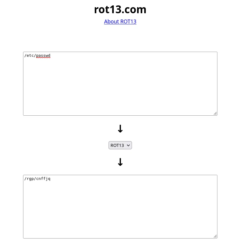 in order to find whether the app is vulnerable to Path Traversal, we can rot13 encrypt the/etc/passwd