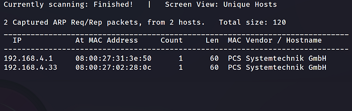 netdiscover -r 192.168.4.0/24Press enter or click to view image in full size