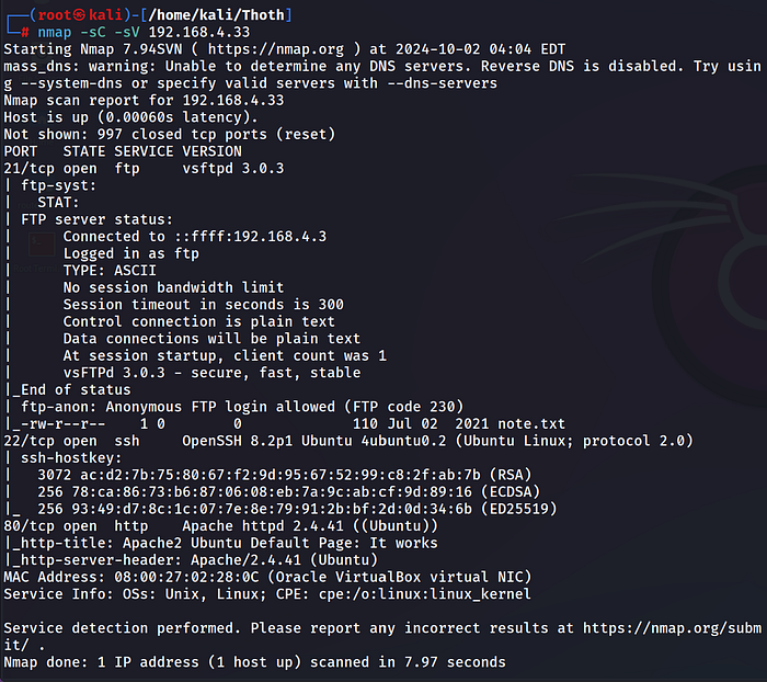 nmap -sC -sV 192.168.4.33Press enter or click to view image in full size