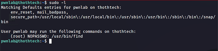 Bingo! We can run the find binay as root with no password required.