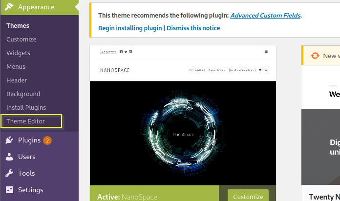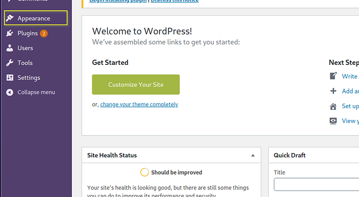 Login into WP_dashboard and explore the appearance tab.