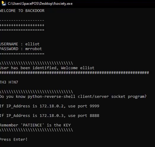 ---ip---/fsociety.exe#It tells us there’s a downloadable file in the main directory. Let’s load the file.
