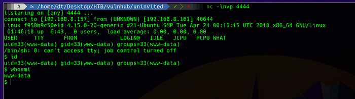 nc -lnvp 4444We get a shell