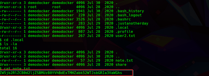 We found a file in a directory/home/demodocker/.local. Filename note.txt
