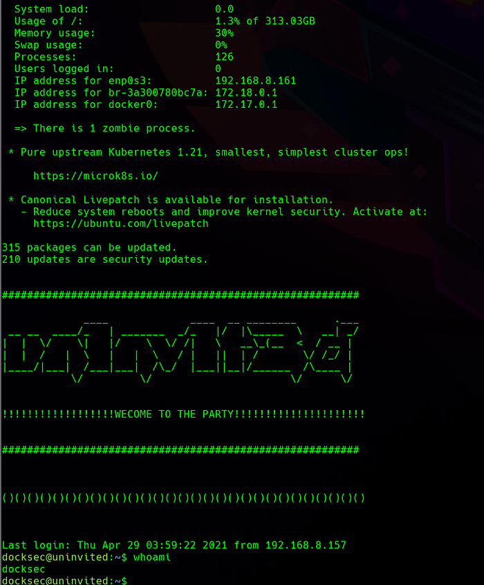 ssh docksec@192.168.8.161 -i id_rsa -p7894Press enter or click to view image in full size