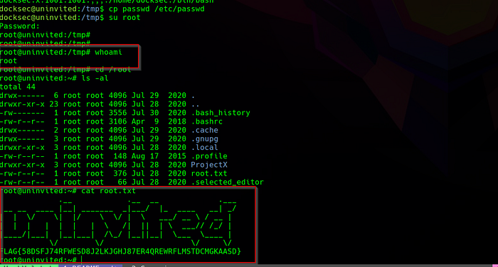 After looking at a directory file /etc/passwd. We found that the file could be modified, and that allows us to step up the privilege and get a root account.