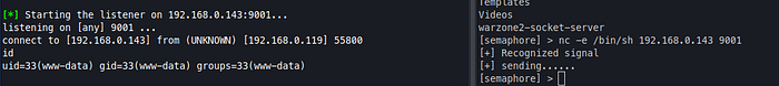 So I can use ls, pwd and nc. Let’s try to get a reverse shell using nc.