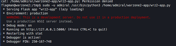 ssh -L 5000:127.0.0.1:5000 flagman@192.168.0.119The first thing I did was to go to /console and put the Debugger PIN and I tried to get a reverse shell from it.
