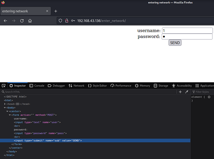 Now I understood that this is not the way to find the flag. So I again researched a lot and I found that there’s a web page named /enter_network in the machine’s web server. So I accessed the webpage in my browser, obviously.