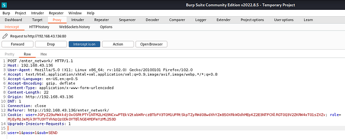 I tried default credentials and it was not successful. So intercepted this webpage in BurpSuite tool, also with some random credentials.