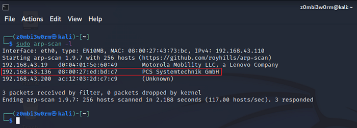 First of all, we need the IP address of this machine. So to find out this machine’s IP address, I used arp-scan tool and the command I used were,