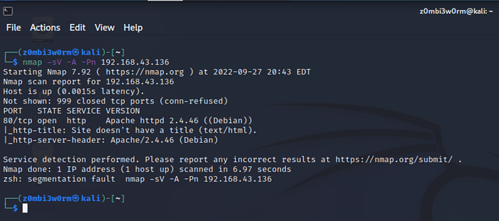 So we got the IP address and the next thing to do is recon on the machine. To do basic port and service scanning, I used nmap tool and the command I used were,