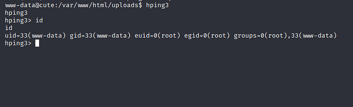 Interesting, hping3 has a command interface per my knowledge, let us try to leverage that into root privileges: