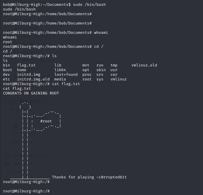 Then switching user to bob and using command sudo -l reveals we can use run all command as sudo.
