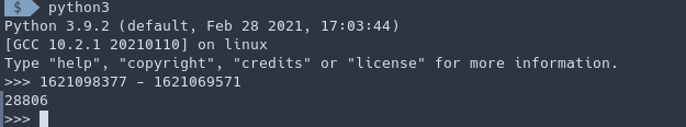 Because of few seconds goes by while i copy pasting, ill use 28800 to evaluate in my case.