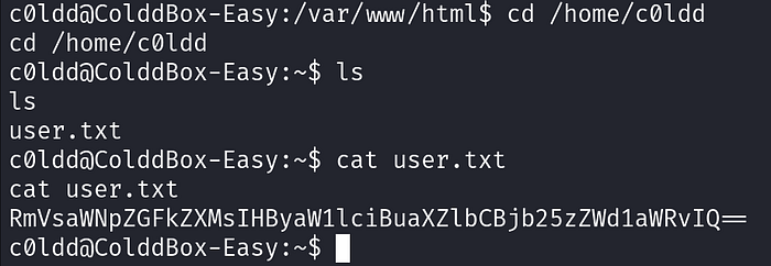 Step 16: Let’s go the c0ldd’s home folder and check if we can find anything interesting. We can navigate there by using the command: