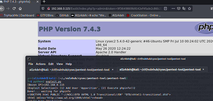 [Exploit Selection]> [1] Add User 'Apparition', [2] Execute phpinfo()1
