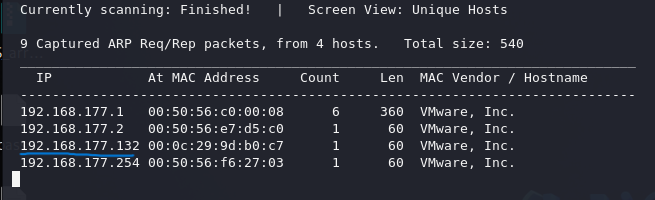 We scanned the local devices around us to find our target. DHCP is enabled and VMWare assigns automatic IP address to the machine.