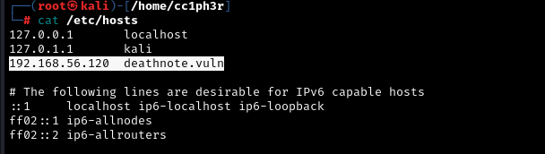 I had to add the deathnote.vuln to a list of my hosts to resolve this.