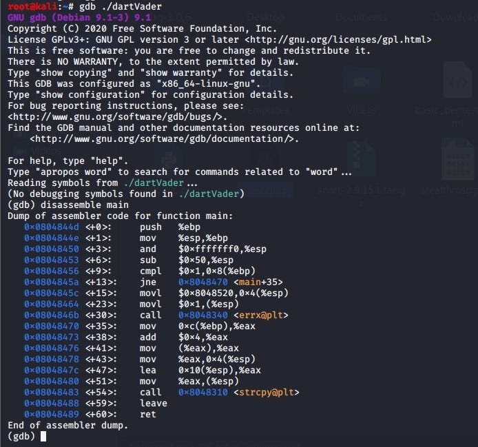 Then it will do a strcpy with the command line argument as input. Pointing a buffer overflow.But,lets move ahead.