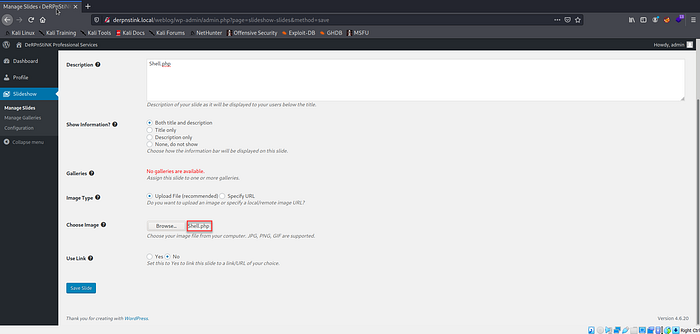 But still, there is a Slideshare section on which we can upload images. We’ll try to upload a reverse shell here.
