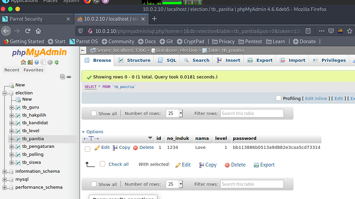 Now the password in the phpmyadmin database seemed to be encrypted by md5. Long story short, tried cracking it ,couldn’t ,so I just added my own encrypted password using the word “password” .