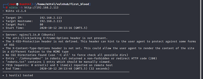 nmap -sC -sV -p- 192.168.2.113 -oN first_blood