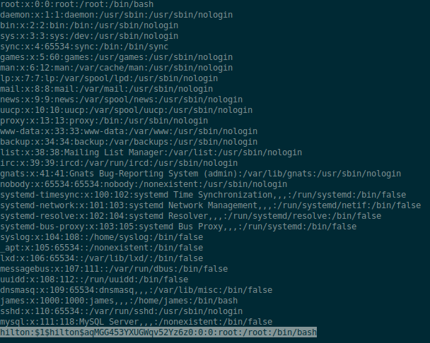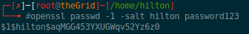 Now we have it we can copy it into a file we make called passwd and add a new user to it. We can create this new user by using the openssl cmd below:
