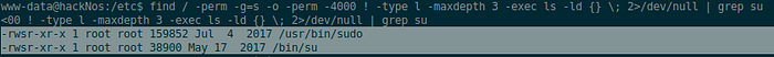 We can run a cmd that will search the box for all of the files with SGID or SUID bits set.