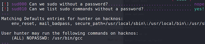 Similarly, hunter has sudo access to gcc. At this point rooting is trivial.