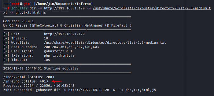 I've enumerated a lot, and the only good thing I've found is this directory /inferno, now let's navigate it