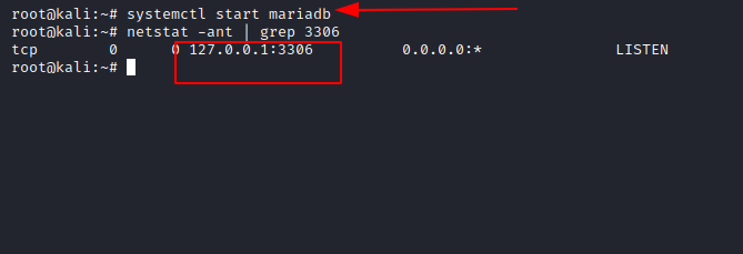 Basically here we have to connect a database to wordpress in order to complete the installation . For that I would have to set up a working database in my machine and link it with the wp install. So let’s setup our mariadb(in built with kali, can be used interchangeably with mysql server) server.
