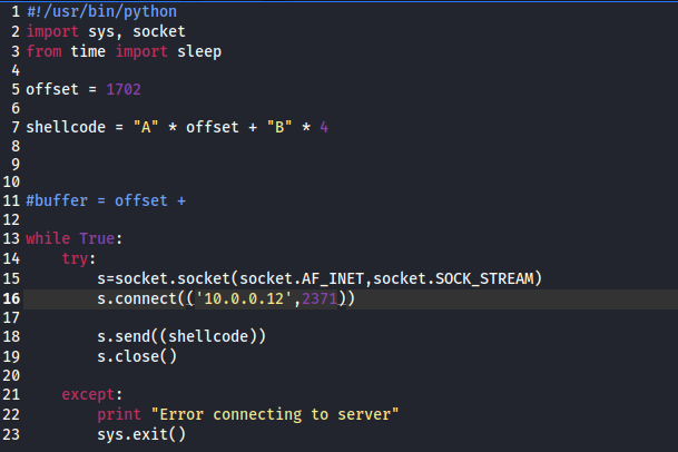 I tried to connect to the CommandoVM on port 2371 and it successfully connected and requested the exact same thing as the target on port 2371. If this is vulnerable to BoF we can exploit the target machine!