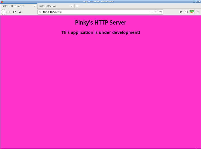 If instead, we take a look at the headers (see the above nmap results), we’ll find that the headers on the 65535 service shows the server is called “pinkys-HTTP-server” and it’s using “HTTP/1.0” instead of 1.1. Since this is an application under development, it isn’t unreasonable to think the application isn’t the website, but rather the server itself. The next task isn’t totally obvious, but if we play around with the headers inside of Burp’s repeater, we’ll notice that we can use directory traversal using “..”.