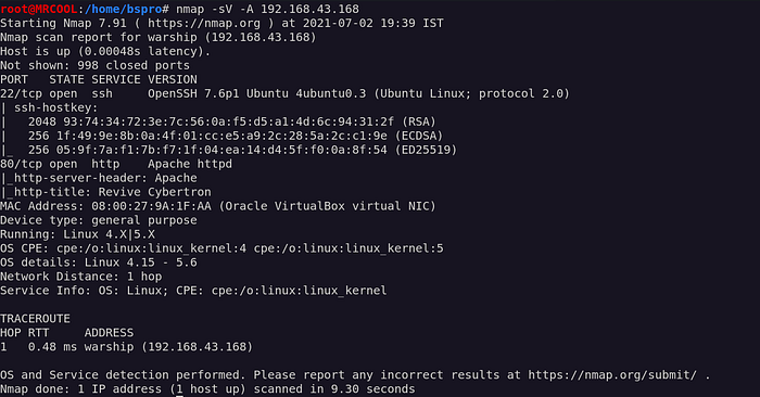 After finding IP let’s start our usual process. Perform a basic NMAP scan
