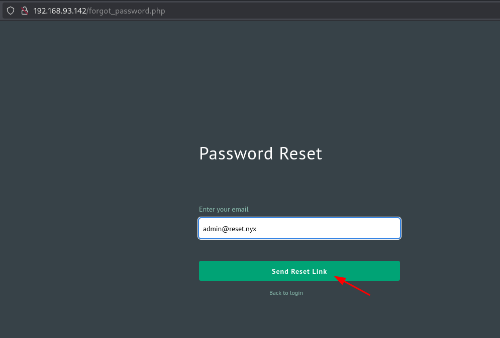 Entonces, una vez se ha explicado el concepto de la técnica que se aplicará, se procede a la explotación, para ello ya se ha enumerado anteriormente correos posibles que pueden ser victimas de el cambio de contraseña. Obviamente el usuario victima lógico es el usuario admin@reset.nyx.