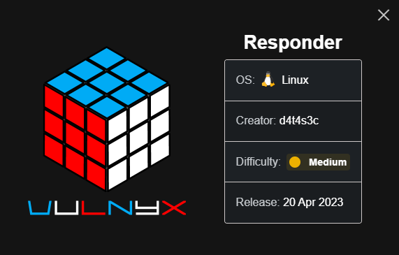 Responder es una maquina Linux de dificultad intermedia de la plataforma VulNyx creada por d4t4s3c, testeada en VirtualBox y VMware.