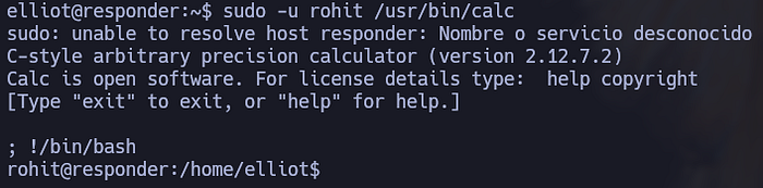 Vemos que haciendo un “sudo -l” podemos ejecutar como rohit el /usr/bin/calc
