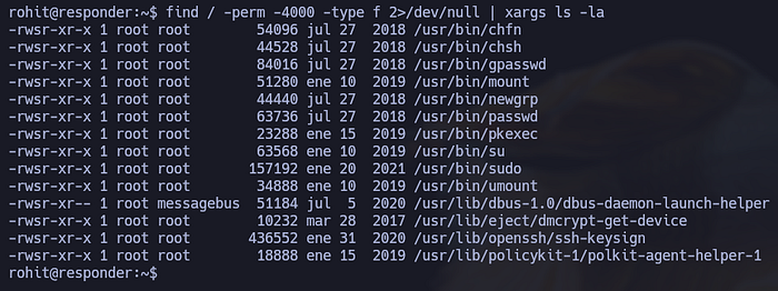 Nos pide contraseña para el sudo -l, asi que buscamos desde la raiz archivos SUID