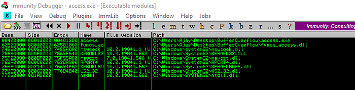 we already backup both files access.exe and funcs_access.dll. let fuzz and find the application crash point