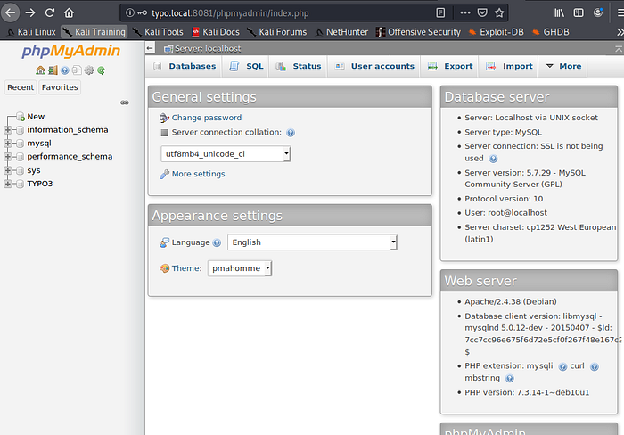 Knowing that I have hit a dead end, I turned to the PHPMyAdmin page and with luck, I got into PHPMyAdmin as root with credentials root:root.