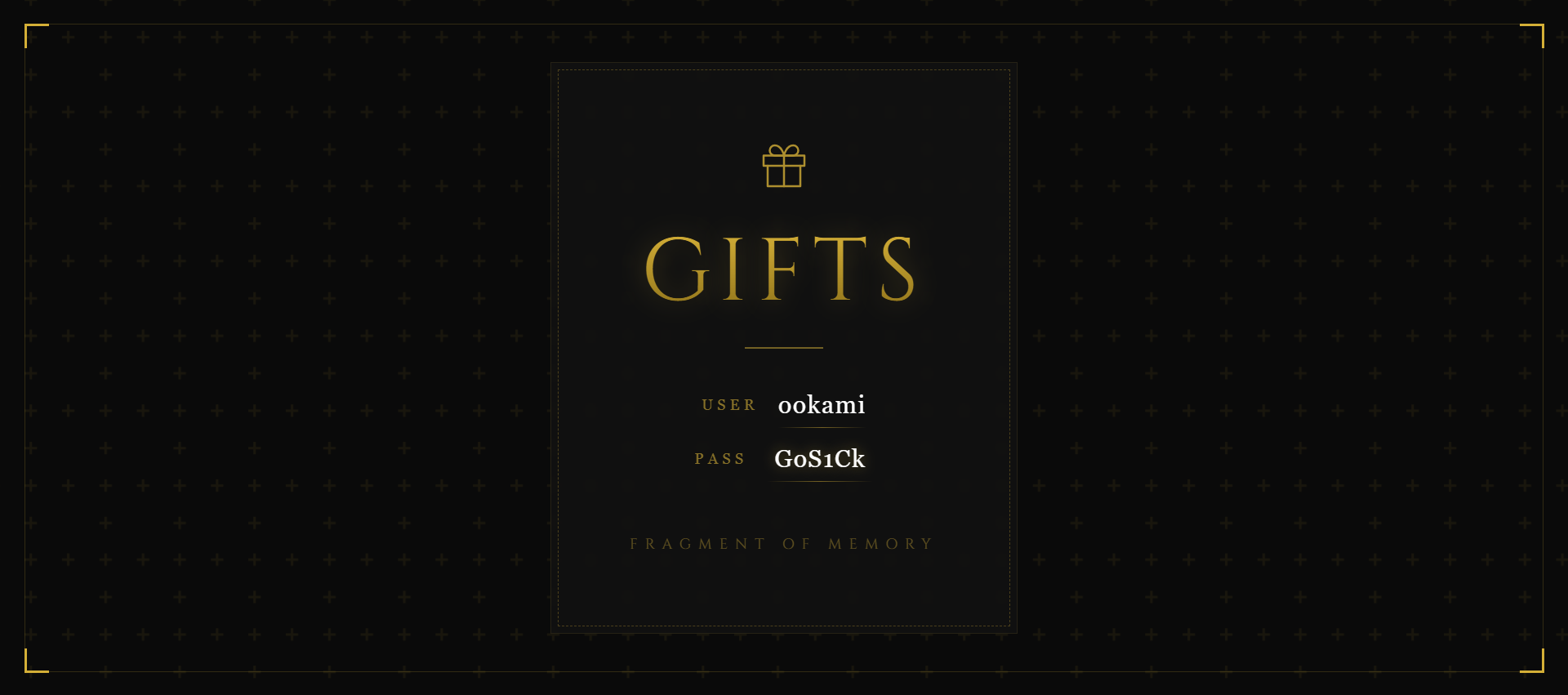 gifts.victorique.xyz - Exploitation: Found credentials and hints on gifts subdomain, leading to discovery of