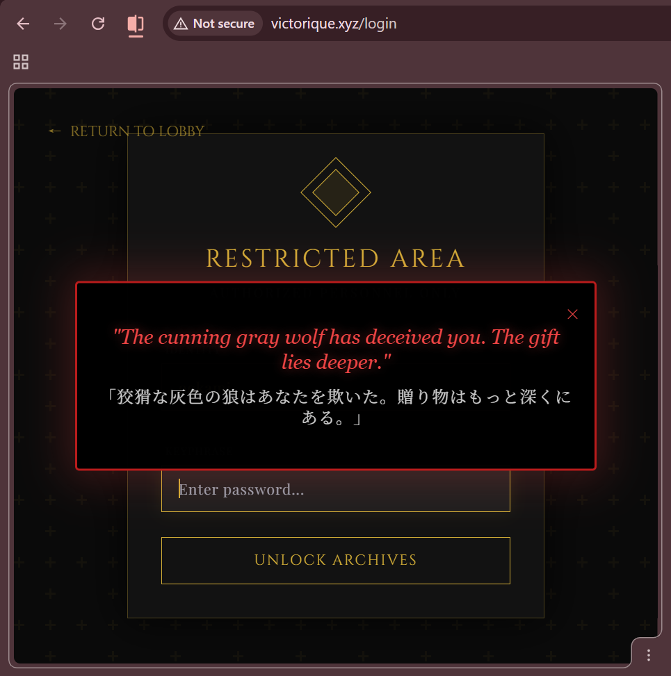 Content-Type: text/htmlAccessing victorique.xyz revealed a GOSICK-themed website: