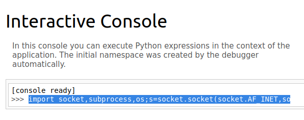 ssh -L 5000:127.0.0.1:5000 flagman@192.168.0.119The first thing I did was to go to /console and put the Debugger PIN and I tried to get a reverse shell from it.